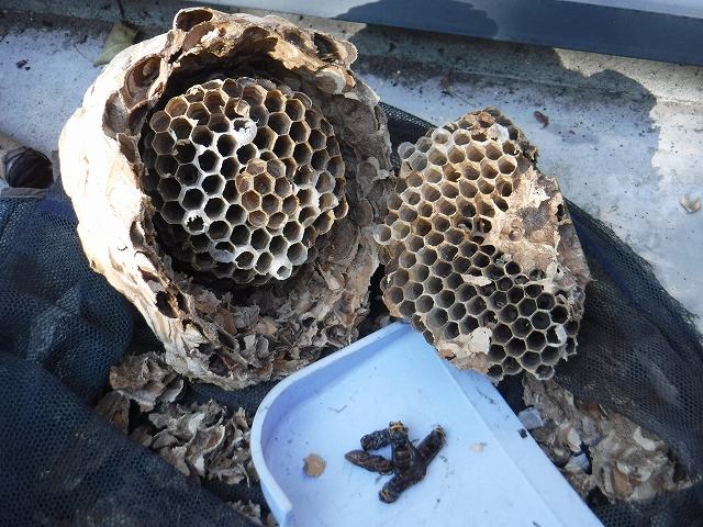 やはりいないか・・・ってことで、そのまま巣を撤去し中を確認(¬д¬。)