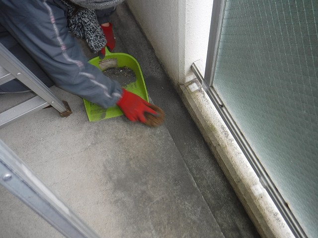 施工内容は、防鳥ネットの取り付けとフンの回収、そしてベランダの消毒です。